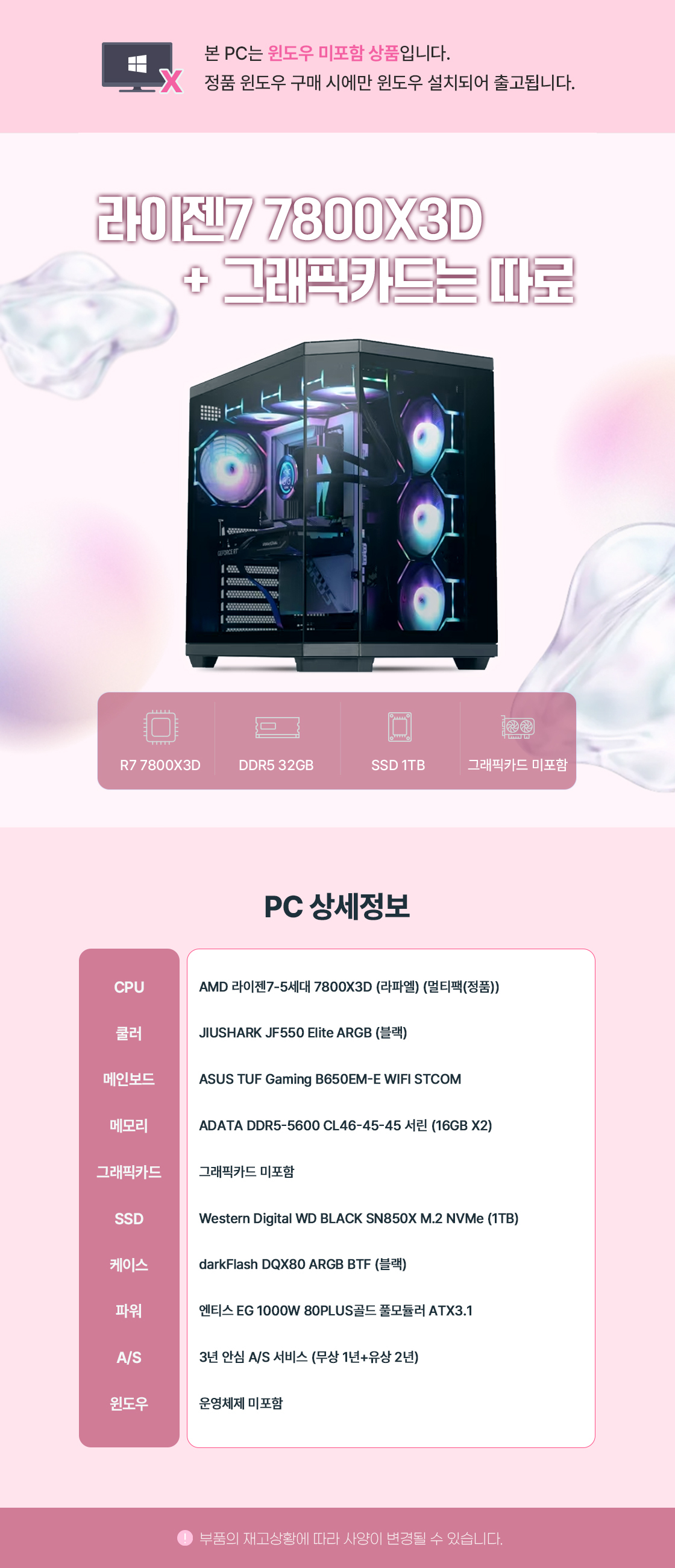 쥐씨 라이젠7 7800X3D + 그래픽카드 따로 반본체 조립컴퓨터