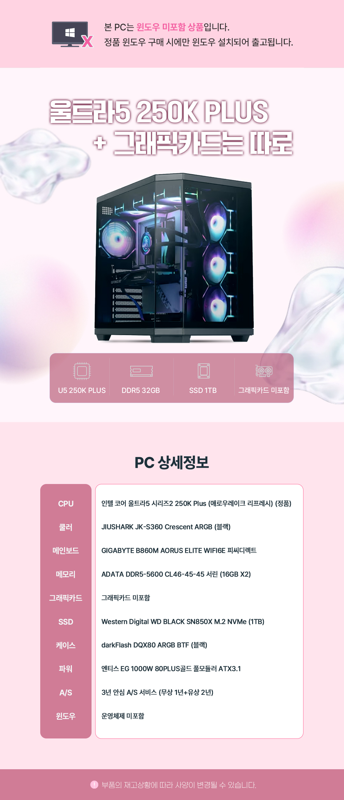 쥐씨 인텔 울트라5 250K PLUS + 그래픽카드 따로 반본체 조립컴퓨터