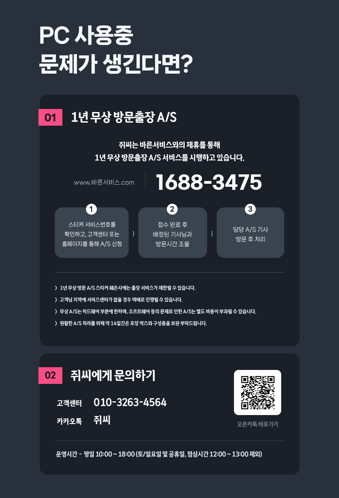 조립 및 프리미엄 테스트, 1년 방문 출장 A/S (1대분)