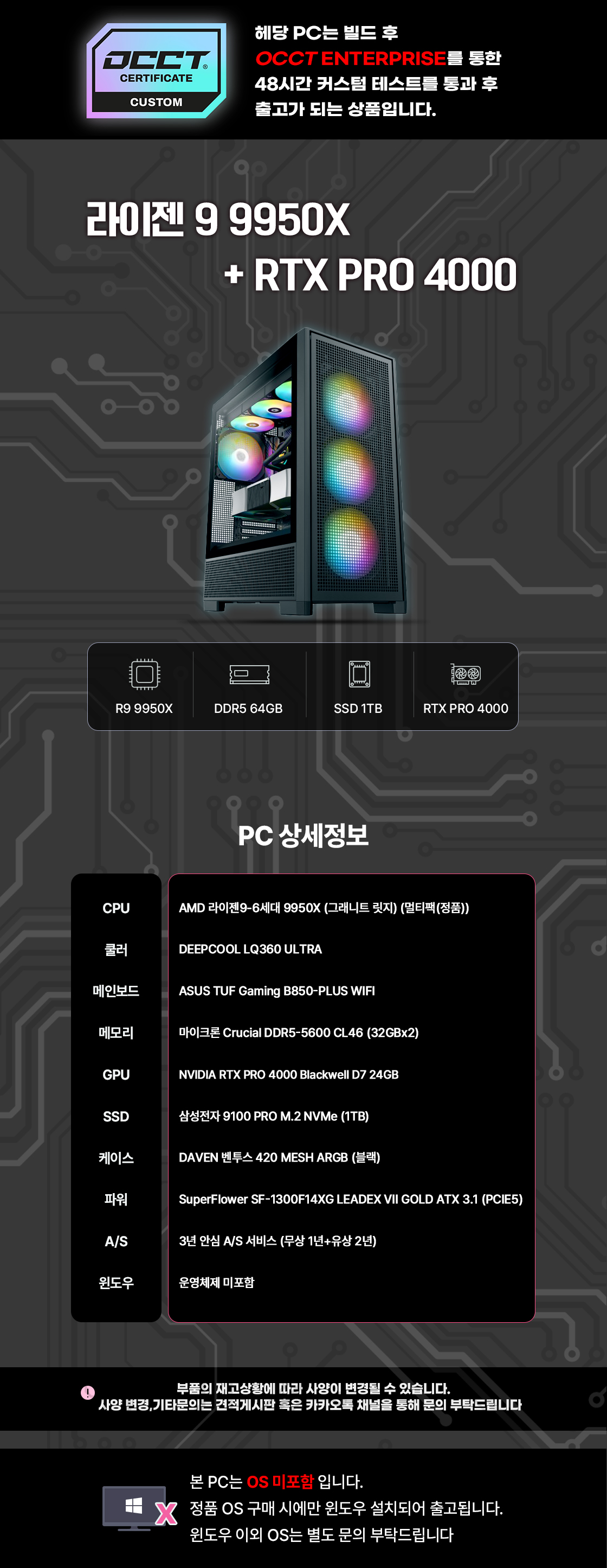 이 시대 진정한 가성비 입문용 워크스테이션 9950X + RTX PRO 4000 (VRAM24GB) + 64GB