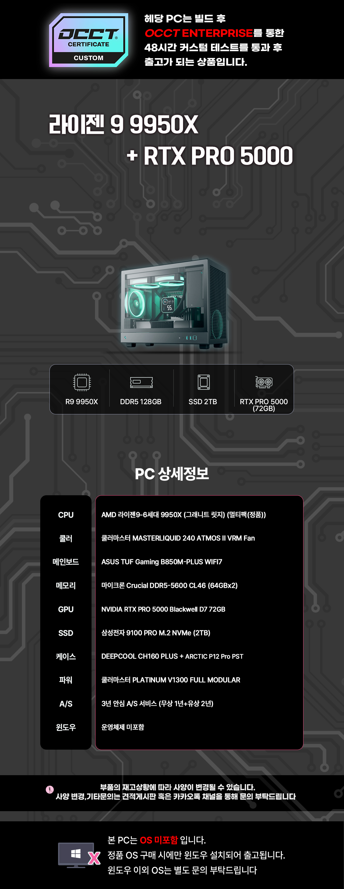 작지만 강력하다 다양한 환경에서 사용하기 위한 휴대용 워크스테이션 9950X/128GB/RTXPRO5000(VRAM72GB)